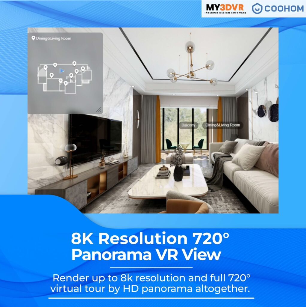 Render up to 12K resolution & Full 720° Panorama Walkthrough with VR